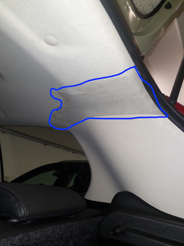 Es kommt irgendwo am Dach rein, durchfeuchtet den Dachhimmel. Läuft dann irgendwie hinter der Verkleidung nach unten am Subwoofer vorbei in die Kofferraum Matte. Beim Runterlaufen scheint es in der Nähe der Heckklappe herunter zu laufen. nicht auf der Verkleidung und auch nicht dahinter.
