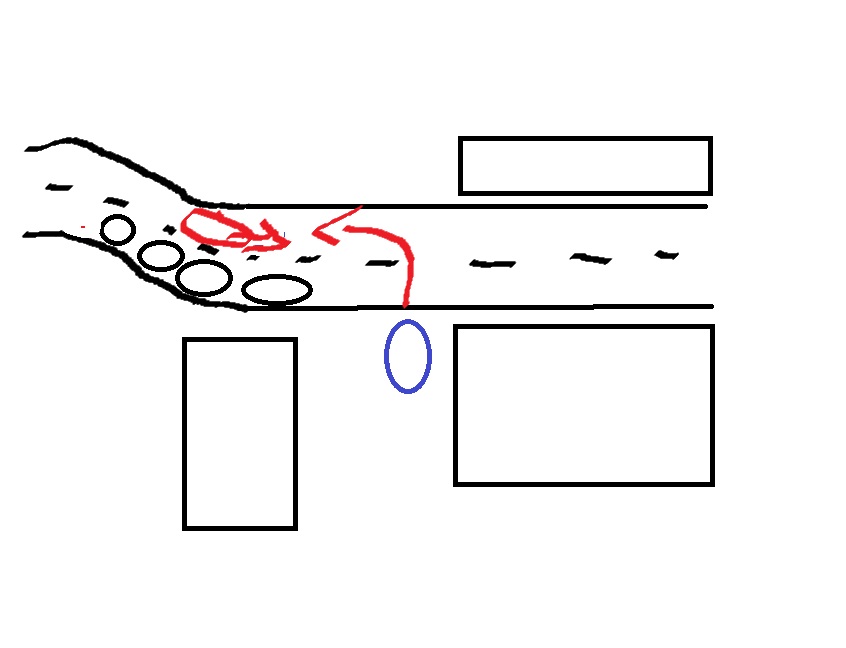 Ich weiß nicht was in den gefahren ist, vielleicht dachte er weil man die Straße des Gegenverkehrs recht gut sieht ich fahr da schnell rum, die van fahrerin hat ja angehalten, um mich (was er nicht wusste) rauszulassen.