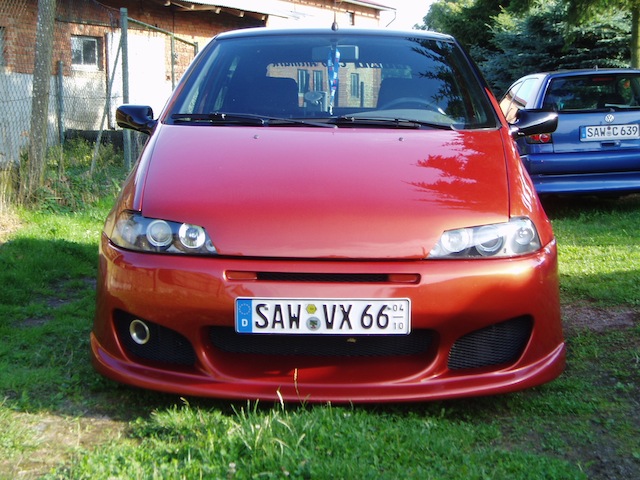 Mein Grande Punto: T-Jet 120ps;Ambient Weiss;Mittelarmlehne;Rote Spiegel+Rote Rallystreifen;Ladedruckanzeige;getönte Scheiben;BarracudaTzunamee in 8x18/215/35;Eibach 45/30;FK-Grill;schwarze Seitenblinker;Led Rückleuchten; Hauben Bra;Merkur Frontspoiler