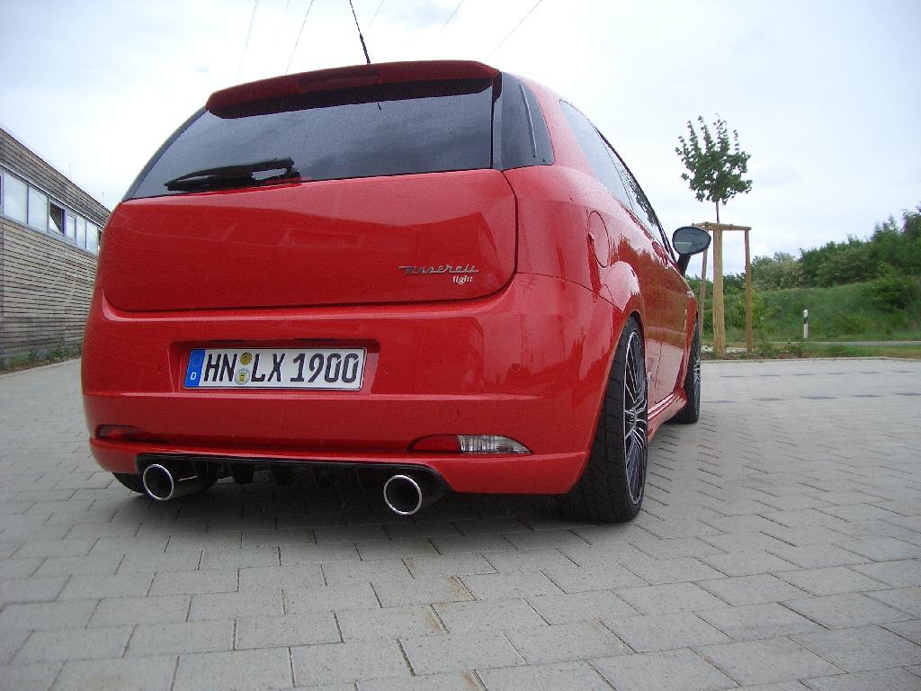 Mein Grande Punto: Ex-Abarth , Leder neu gesattelt schwarz/rot, Brembo Bremsen, Schweller lackiert, KW-Gewinde, Ragazzon Duplex, K+N Luftfilter, Heckwischer entfernt, weisse NSL, schwarze Blinker, Distanzscheiben HA 15mm, Novitec Pedalerie, 8,5x18 Felgen...