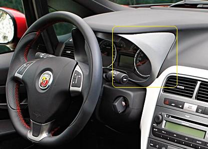 Jetzt hab ich unten das Bild von Innenraum des Abarth gefunden. Diese Blende wäre doch was - in Farbe der Amaturen in der Mittelkonsole :023: